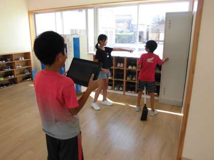 校舎内の様々な場所で、楽しそうに動画制作をする姿が見られました。