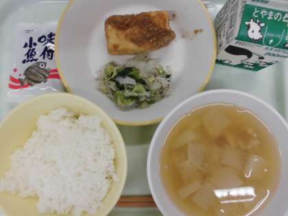 9月14日(木)今日の給食 公開日 2023/09/14 更新日 2023/09/14 給食 今日の給食の献立は、 ・ごはん ・揚げ出し豆腐のごまからめ ・ゆかり和え ・豚汁 ・味付け小魚 ・牛乳 です。