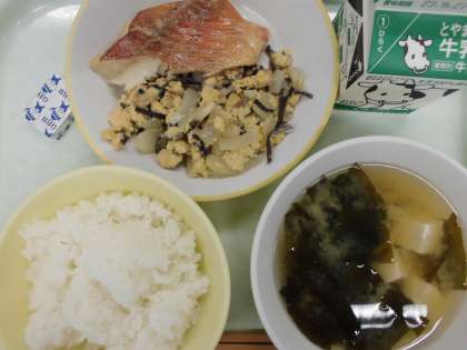 9月20日(水)今日の給食 公開日 2023/09/20 更新日 2023/09/20 給食 今日の給食の献立は、 ・ごはん ・赤魚の塩焼き ・卵ときくらげの炒め物 ・味噌汁 ・ポケットチーズ ・牛乳 です。