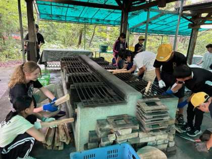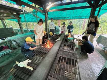 火起こしに挑戦しています。どの班も、火がついてきたようです。