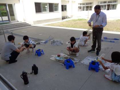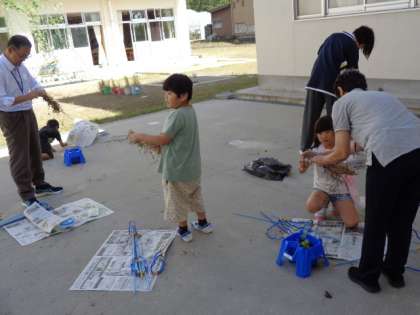 1学期から育ててきたアサガオとお別れです。つるは束ねてリースにしました。使った支柱や植木鉢、新聞紙等を片付けるのも学習です。