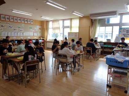 ハヤシライスやサラダ、デザートをみんなでおいしくいただきました。