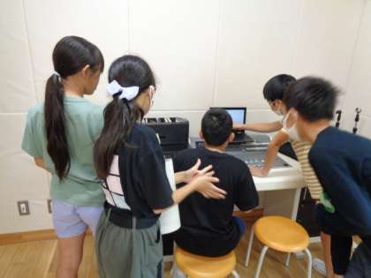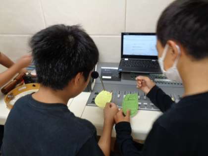 給食時間の校内放送です。各委員会の子供たちが分担して放送しています。体つくり委員会の子供たちは「給食の献立」について、運営委員会の子供たちは、「ハッピースマイル(ハピスマ)子」の紹介、情報委員会の子供たちは、「図書室や本に関するクイズ」を出していました。