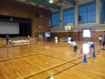 3・4年生は体育で走り高跳びの学習をしています。