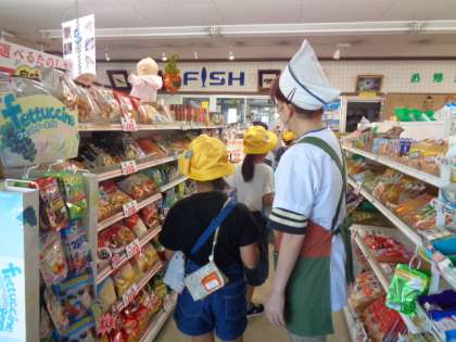 校区にあるスーパーでは、おすすめの商品や、魚を仕入れ先などを質問し、いろいろなことが分かったようです。また、ハロウインの飾り付けがされた飲食スペースで、聞いたことをまとめました。