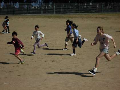 木曜ののびのびタイムは、体力つくり活動です。グラウンドで元気いっぱい走ります。