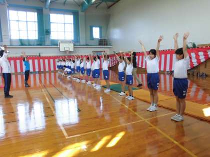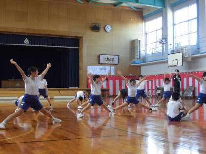 体育、マット運動の様子です。今日は、指導員の先生にご来校いただき、分かりやすく楽しくご指導していただきました。