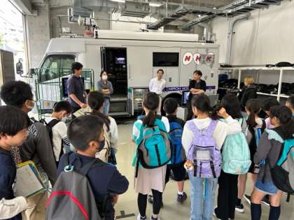 スタジオや中継車を見せていただき、アナウンサーやカメラマンの体験もさせていただきました。