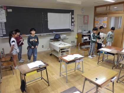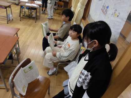 2年生、国語の様子です。3人グループになり、音読劇の練習をしていました。それぞれの役になりきり、身振り手振りを交えながら、練習していました。