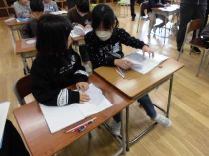 3年生、算数の様子です。円について学習しています。今日は、円の中心の求め方を考えていました。