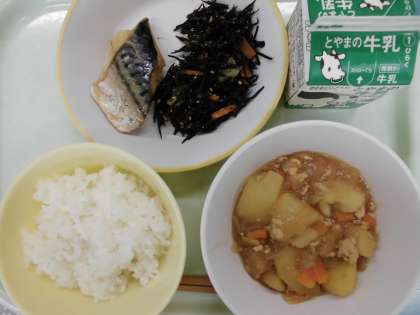 11月16日(木)今日の給食 公開日 2023/11/16 更新日 2023/11/16 給食 今日の給食の献立は、 ・ごはん ・さばの塩焼き ・ひじきの胡麻和え ・じゃがいものそぼろ煮 ・牛乳 です。