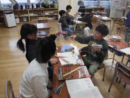 2年生は、国語「馬のおもちゃの作り方」を学習しています。今日は実際に、教科書に載っている説明通りに、馬のおもちゃを作ってみました。