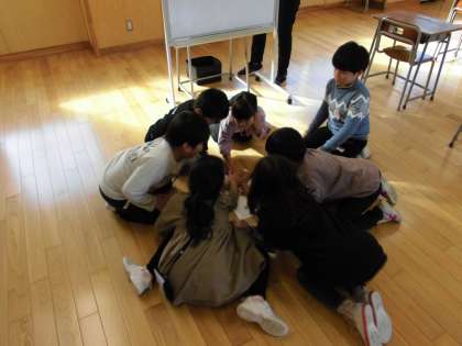 1年生の音楽科の授業の様子です。音楽専科の先生がならした楽器を、耳で聞いて当てるゲームをしていました。音がなると、一斉に楽器カードに飛びつく子供たちでした。