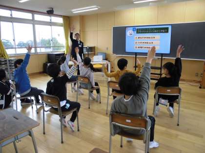 富山県警少年サポートセンターの方をお招きし、1年生を対象に「くもくん教室」を行いました。