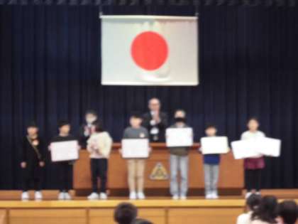 終業式の後、授賞伝達と冬休みの過ごし方についてのお話がありました。