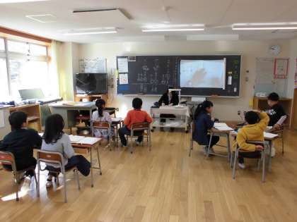 1年生、国語の様子です。ペアやグループになり、「ことばあそび」の学習をしていました。