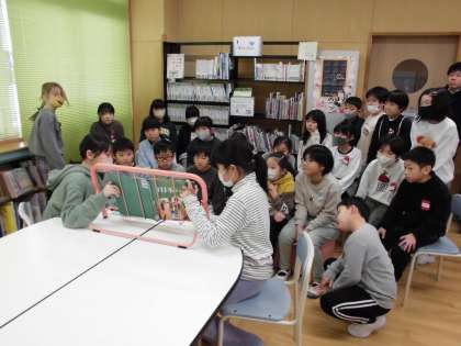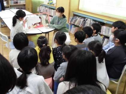 のびのびタイムに、情報委員会が図書室で読み聞かせ会を行いました。