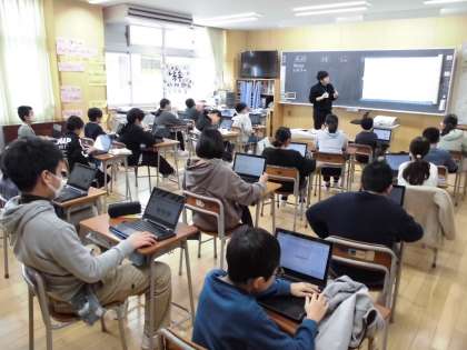 5年生、社会科の様子です。クロムブックを使い、学習したことをまとめています。
