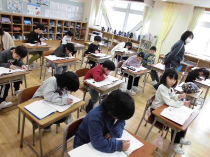 2年生、算数の様子です。教科書の練習問題に取り組んでいます。