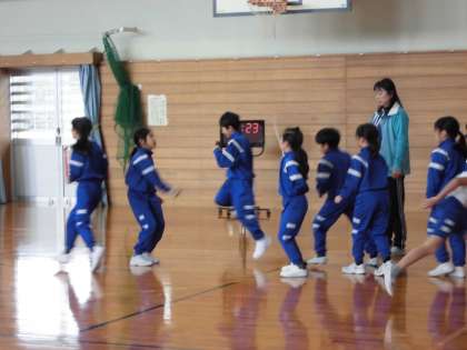 3年生、体育の様子です。長縄跳びの練習をしてます。