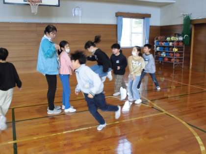 低学年の様子です。練習を始めた頃と比べると、縄が止まる回数が少なくなってきました。自己ベストも順調に更新しています!