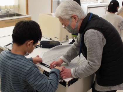2学期に引き続き、地域の家庭科ボランティアさんにご来校いただき、分からないところを優しく丁寧に教えていただきました。