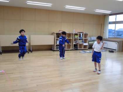 1年生、体育科の授業の様子です。縄跳びを練習しています。