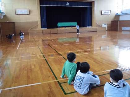 体つくり委員会は、来週の短縄跳び大会のリハーサルをしていました。