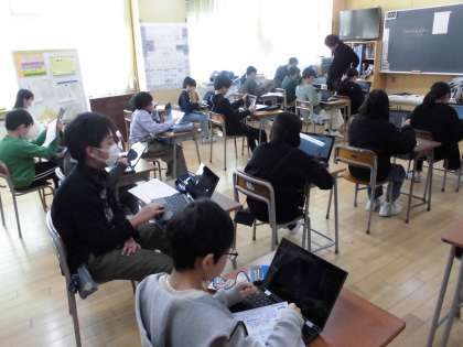 5年生、算数の様子です。クロムブックを使用し、学習を進めています。