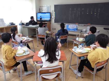 今週から来週にかけて、給食の時間には、6年生1人1人のインタビュー動画や、1〜5年生からの「ありがとう動画」が放送されます。
