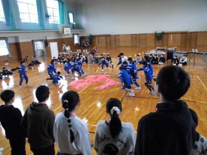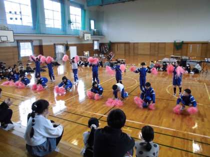 楽しいリズムのダンスに、全校児童が盛り上がりました。