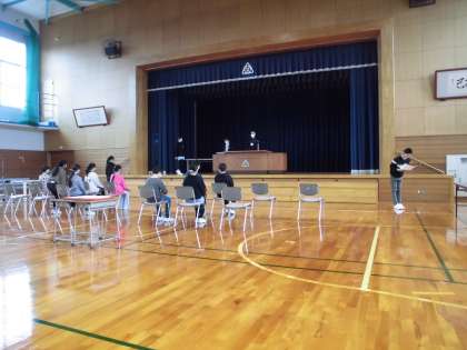 6年生は、卒業証書授与の練習を体育館で行いました。卒業生らしい立派な態度や姿勢で練習に臨んでいます。