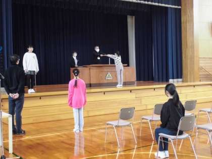 6年生は、卒業証書授与の練習を体育館で行いました。卒業生らしい立派な態度や姿勢で練習に臨んでいます。