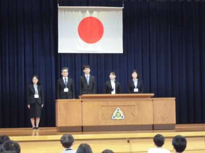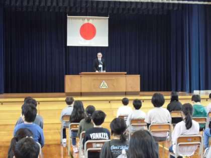 着任式で子供たちは、新しく5人の教職員と出会い、とても興味をもって真剣にお話を聞いていました。