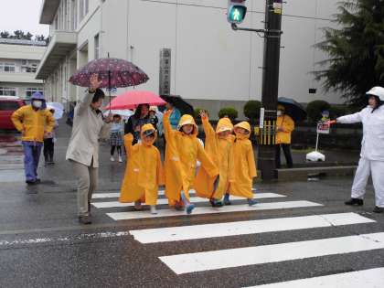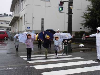 その後、1・2年生は、学校前の横断歩道を渡る練習をしました。