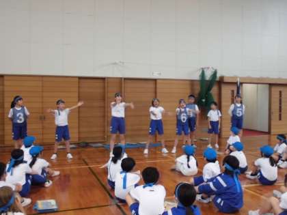 その後は、各団に分かれてはじめての応援練習をしました。赤団は「正々堂々」、青団は「一生懸命」のスローガンのもと、声を上げて士気を高めました。
