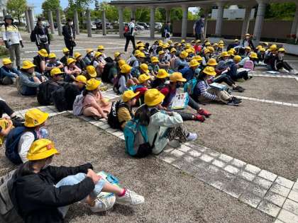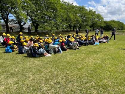 みんな、元気です。これから行うオリエンテーリングの話を聞いています。