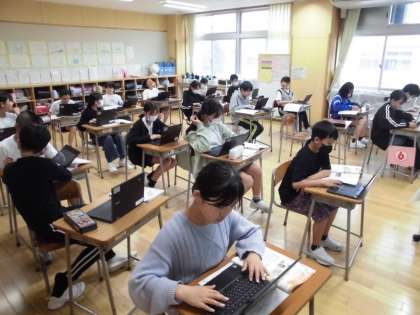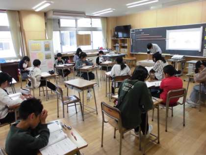 5年生は算数科、6年生は家庭科の様子です。家庭科は朝食について学習していました。