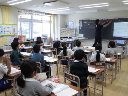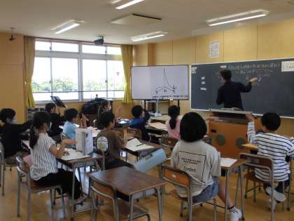 4年生、音楽科の様子です。8分の6拍子の指揮をしています。拍子によって曲の感じ方がどう変わるのか、指揮をしながら体感しています。