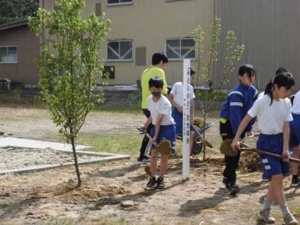 今日は、6年生が「みどりの日」記念植樹を行いました。