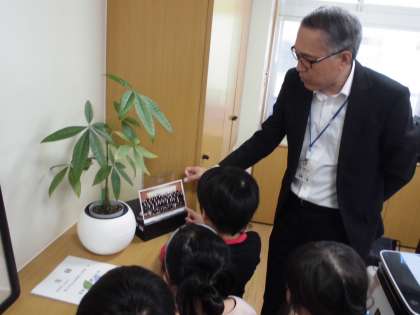 1年生は生活科の学習で、校長室へ探検に行きました。子供たちは、はじめての校長室に心躍らせ、ふかふかのソファーに座らせてもらったり、校長室に飾られている物について質問したりしていました。優しい校長先生とたくさんお話ができて、とてもうれしそうな1年生でした。