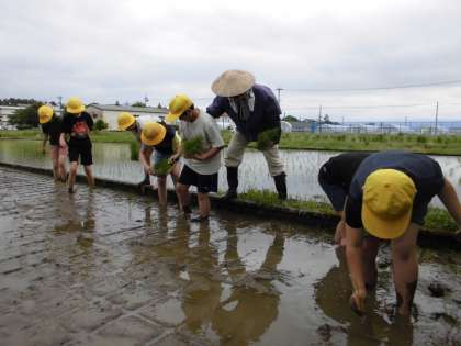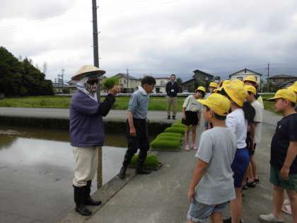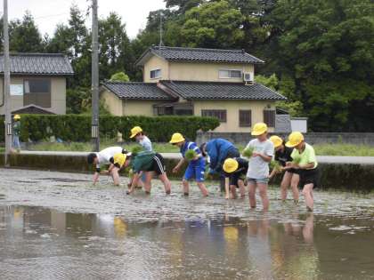 5年生は、地域の方々に教えていただきながら、田植えを体験しました。