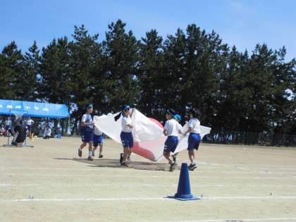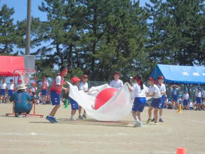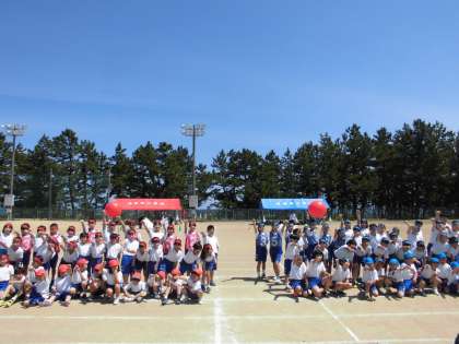 今年の縦割り競技は、シートの上に大小様々なボールを乗せ、慎重かつスピード感をもって運びました。1〜6年生みんなで協力し、声を掛け合う姿が印象的でした。