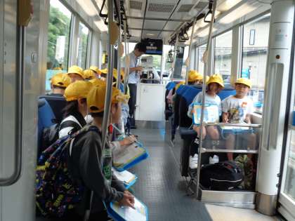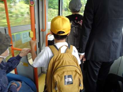社会科見学では、バスや路面電車等の公共交通機関を使用して移動しました。公共マナーを守ると共に、自分から声をかけて席を譲る姿も見られました。