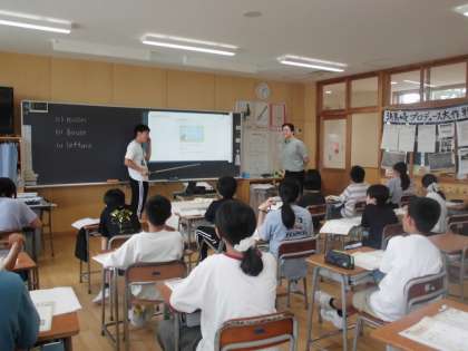 6年生、外国語の様子です。ALTの先生と学習しています。