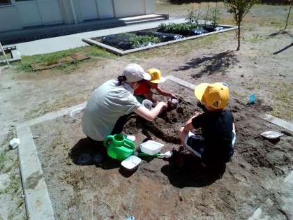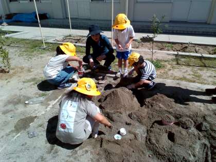 1年生は、図工で「すなやつちとなかよし」の学習を行いました。子供たちは砂を型抜きしたり水を加えて流したりしました。とても楽しく学習できました。