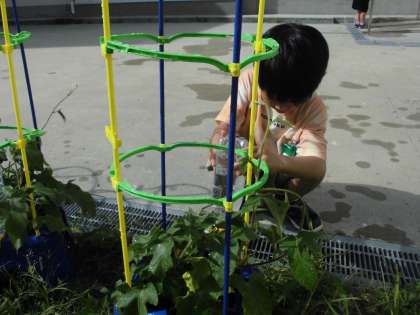 子供たちは、「自分のはいつ咲くかな」と花開くのを楽しみに、水やりに励んでいます。