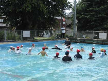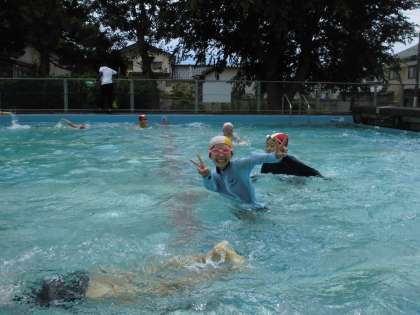 2学年で仲良く、手つなぎオニをしたり、輪を作りプールの中をぐるぐる回ったりしました。子供たちの笑顔がきらりと輝く水泳学習でした。