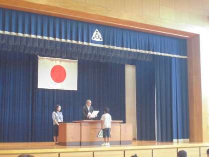 終業式の後には、富山県民体育大会にて優勝選手賞を受賞した児童の表彰式を行いました。素晴らしい功績が表彰されてとてもうれしいです。