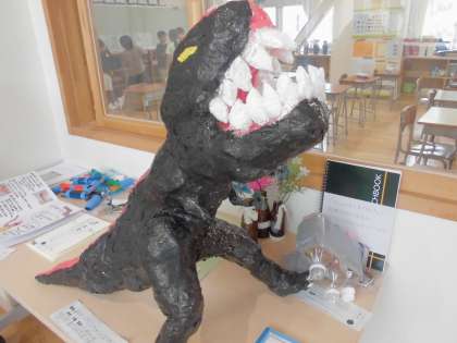 各教室前には、夏休み中に取り組んだ自由研究や工作等、たくさんの力作が並びました。